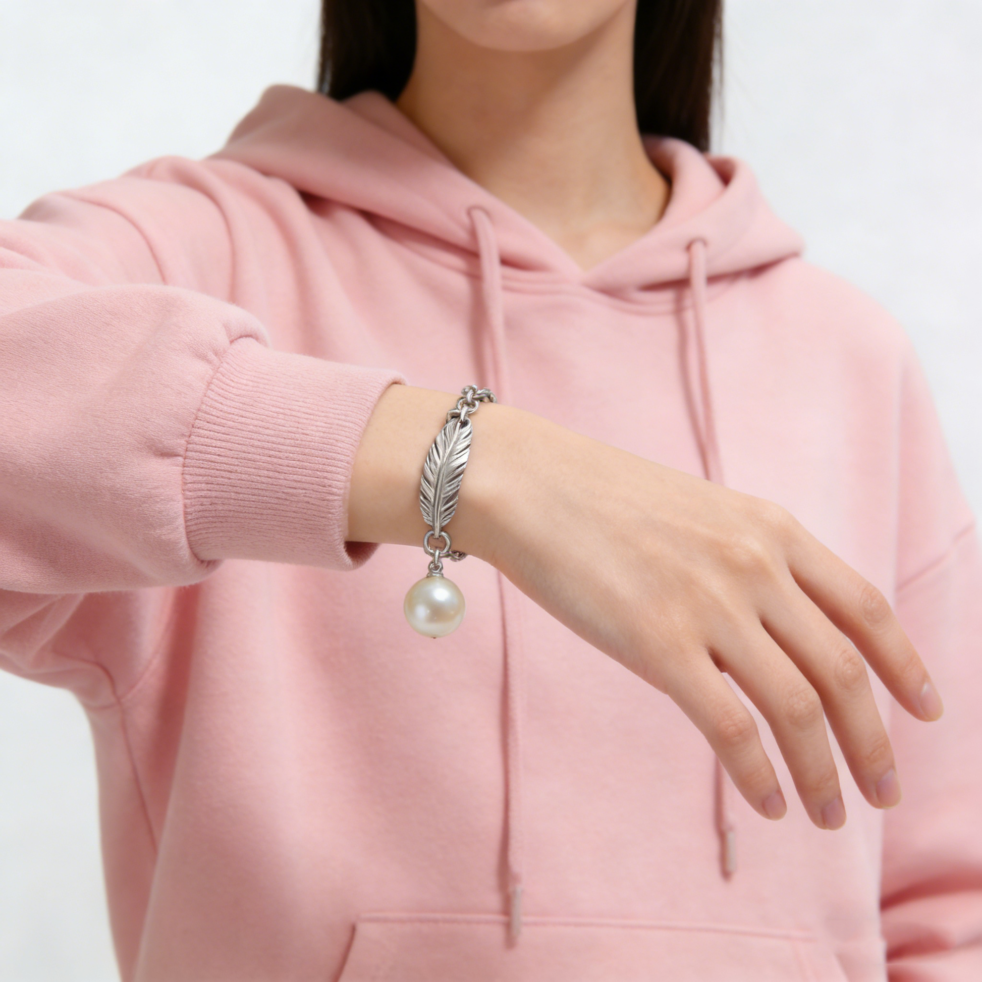 Elevate your wrist with timeless elegance. This vintage silver bracelet seamlessly combines delicate feather detailing with lustrous pearl accents, creating a refined piece that transitions effortlessly from day to evening. The chain design offers graceful movement while the pendant focal point draws admiring glances. Perfect for those who appreciate understated luxury and classic aesthetics, this bracelet pairs beautifully with both casual and formal ensembles.