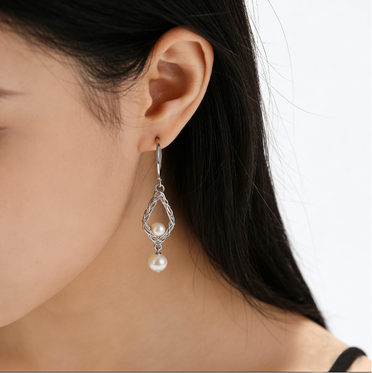 Elegant woven teardrop frames cradle lustrous pearls in these refined long earrings, designed to elevate any occasion. The intricate metalwork creates a striking silhouette that catches light beautifully, while the pearl accents add timeless sophistication. Perfect for those who appreciate understated luxury and distinctive craftsmanship. These statement pieces transition seamlessly from day to evening wear, offering versatile elegance for the discerning wearer.